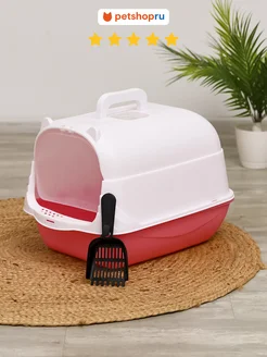 Лоток закрытый для кошек с совком, 46 см, розовый