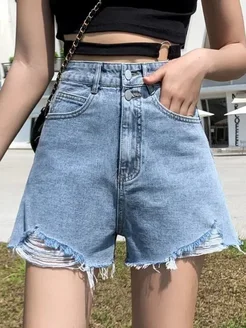 Шорты Джинсовая Рваный Лето Скинни,синий