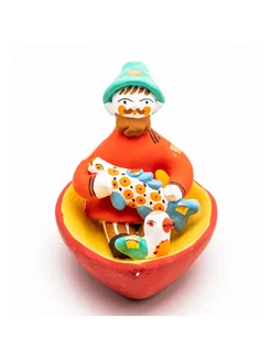 Фигурка "Мужик в лодке с рыбой и птичкой"