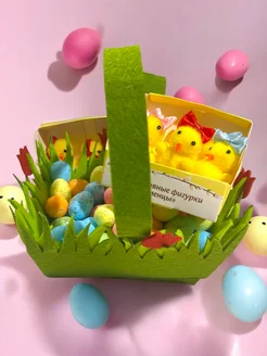 Корзинка пасхальная с пасхальными яйцами, с птенцами