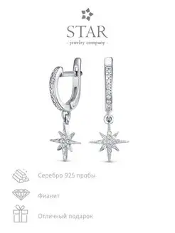Ювелирные Серьги Звезды с фианитами из серебра 925