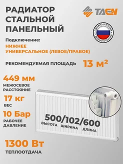 Радиатор отопления стальной VC TN.VC.22.500.0600, нижнее