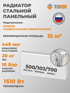 Радиатор отопления стальной VC TN.VC.22.500.0700, нижнее
