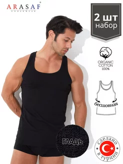 Майка бельевая черная хлопок гладь комплект 2 шт