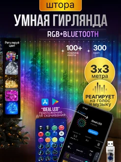 Умная гирлянда штора с пультом и приложением RGB bluetooth