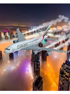 Модель самолета металлическая Airbus A380 - Emirates 15 см