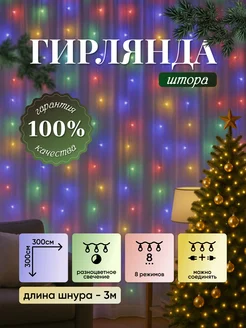 Гирлянда Штора занавес 3х3 метра разноцветная