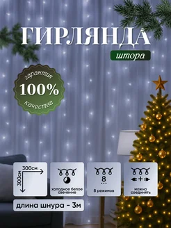 Гирлянда Штора занавес 3х3 метра белый