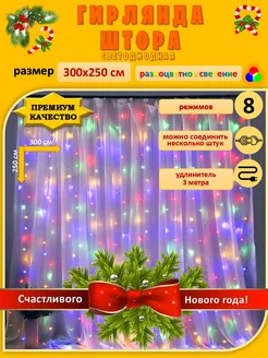 Гирлянда Штора занавес 3х2,5 метра разноцветная