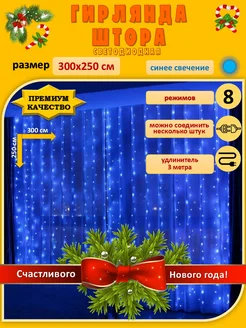 Гирлянда Штора занавес 3х2,5 метра синий