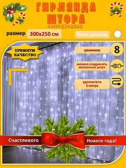 Гирлянда Штора занавес 3х2,5 метра белая