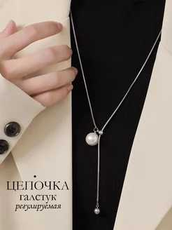 Цепочка галстук на шею с жемчужиной длинное колье сотуар