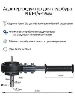 Редуктор-адаптер с валом 18мм для ледобура под шуруповерт