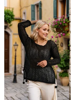 Нарядная черная блузка кружевная кофта, ажурный кардиган