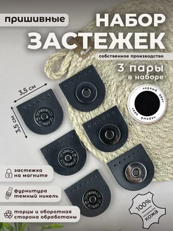 Застёжки кожаные на магнитной кнопке, 3 пары