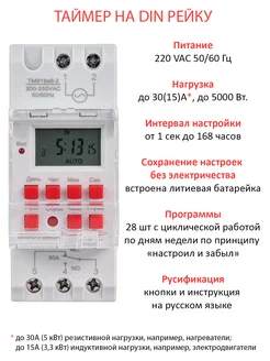 Электронный цифровой таймер на din рейку TM615 16А 3500Вт