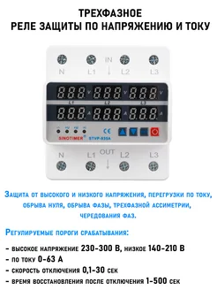 Реле контроля напряжения, тока, счетчик кВт SVP-977L 80A