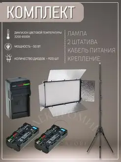 Видеосвет для фото и видео съемок с 2 аккумуляторами