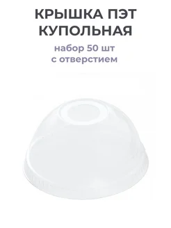 Одноразовые крышки пэт купольные с отверстием набор 50 шт
