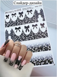 Слайдер наклейки для длинных ногтей кружева бантики