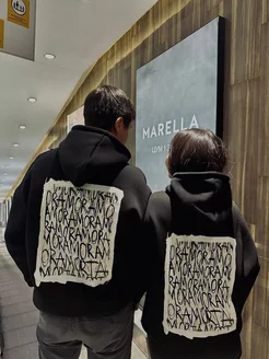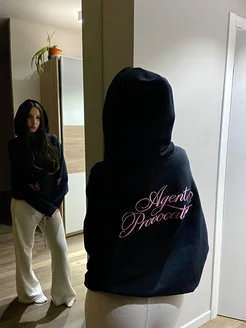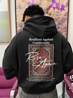 Худи оверсайз с капюшоном, начесом и принтом на спине