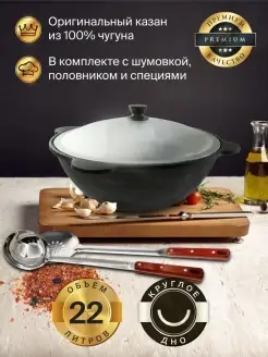 Казан чугунный с крышкой 22 л с набором