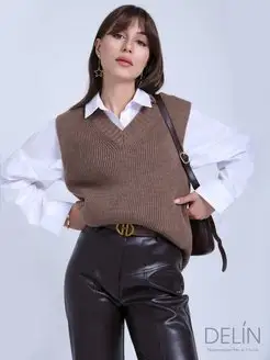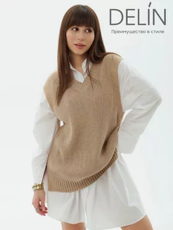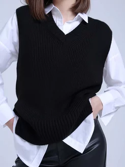 Жилетка школьная вязаная оверсайз трикотажная безрукавка