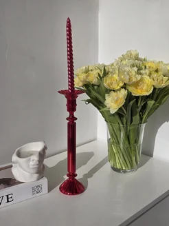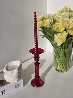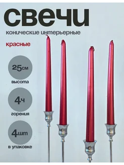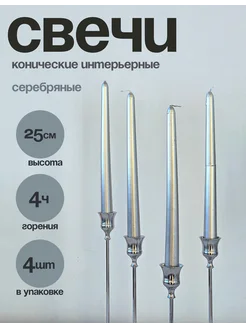 Набор серебряных конических новогодних свечей для дома 4 шт