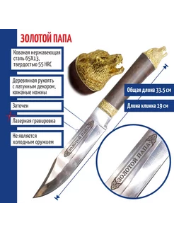 Нож Волк "Золотой папа" с ножнами (сталь 65х13)