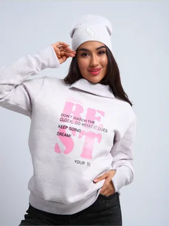 Свитшот оверсайз с принтом женское худи без капюшона