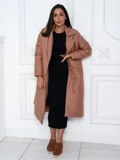 Пальто длинное стеганное утепленное с поясом