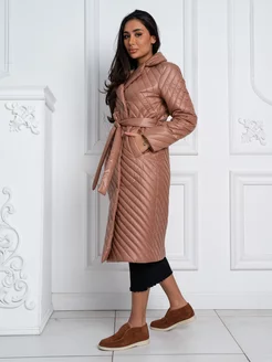 Пальто длинное стеганное демисезонное