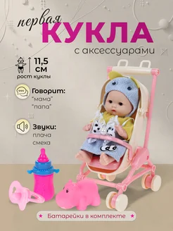 Мини кукла - пупс говорящий с коляской и аксессуарами 18 см