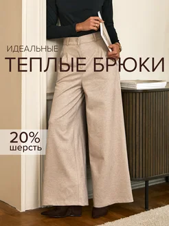 Брюки теплые палаццо широкие шерстяные большие размеры