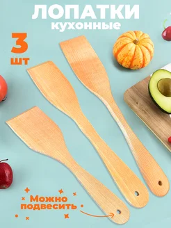 Лопатки кухонные деревянные для жарки блинов торта 3 шт
