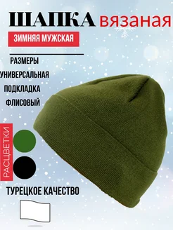 Шапка мужская вязаная, с флисом