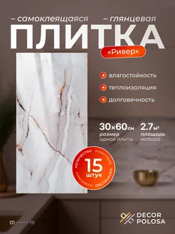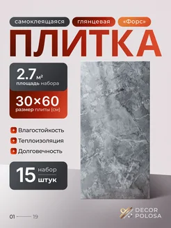 Плитка самоклеящаяся глянцевая, ПВХ, 60x30 см, 15 шт