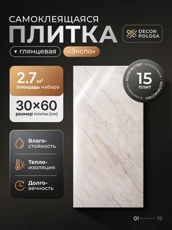 Плитка самоклеящаяся глянцевая Экспо, ПВХ, 60x30 см, 15 шт