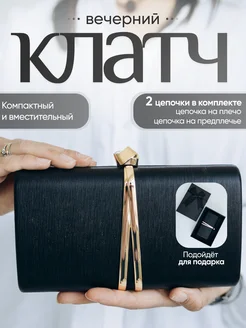 Вечерний клатч черный с цепочкой