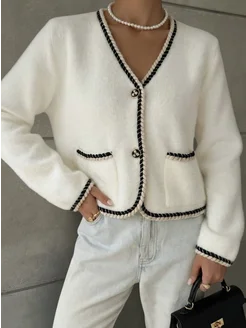 Кардиган укороченный на пуговицах мягкий пушистый