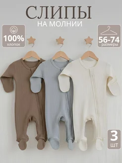 Слип для новорожденных на молнии комбинезон нательный 3 шт