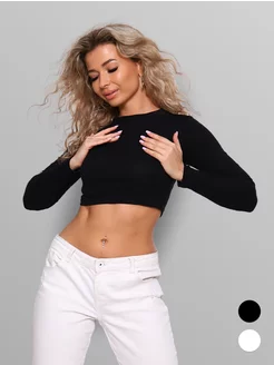 Лонгслив укороченный в рубчик облегающая кофта футболка