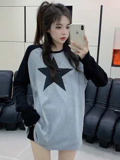 Лонгслив оверсайз со звездой y2k удлиненный повседневный