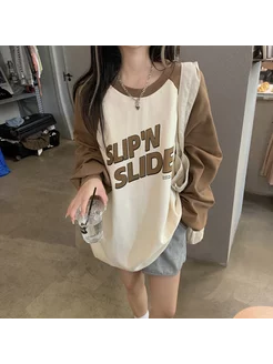 Лонгслив y2k оверсайз коричневый с принтом, свитшот