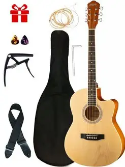 Гитара с металлическими струнами, чехлом и аксессуарами