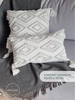 Наволочка декоративная сканди с бахромой и кисточками 2шт