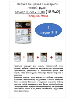 Укрывная пленка с малярной лентой 0,55м х 33,0м (18.5м2)