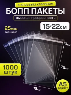 Пакет БОПП 15х22 см 1000 шт с клеевым клапаном BOPP