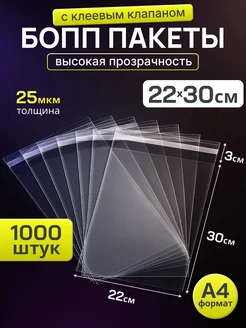 Пакет БОПП 22х30 см 1000 шт с клеевым клапаном BOPP