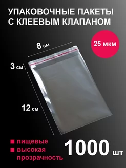 Пакеты 8х12 см 1000 шт полипропиленовые с клеевым клапаном